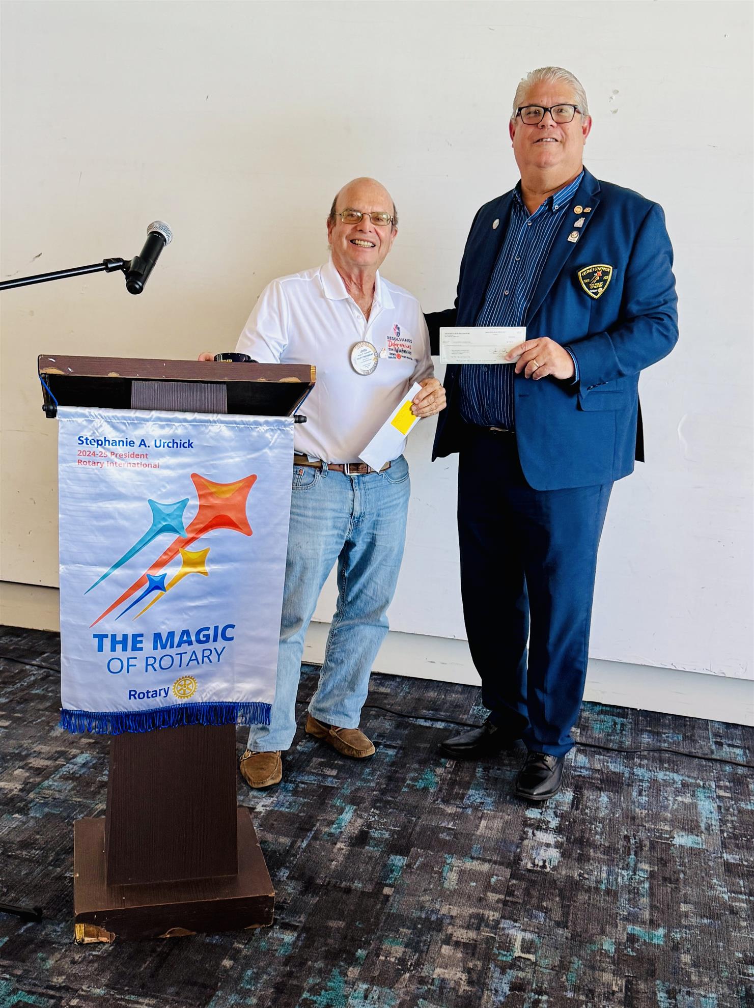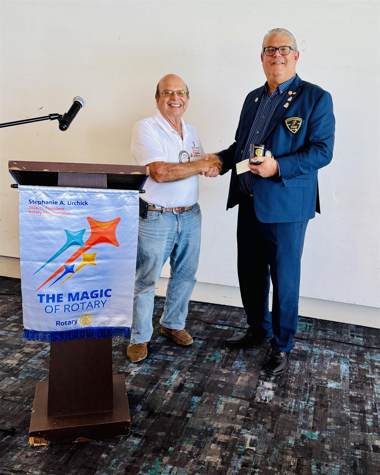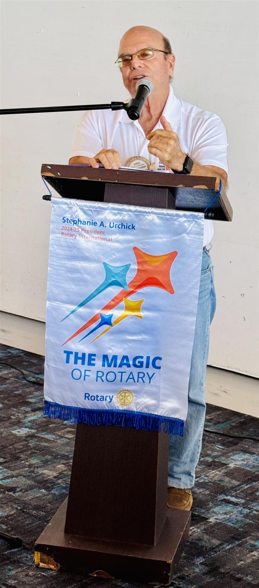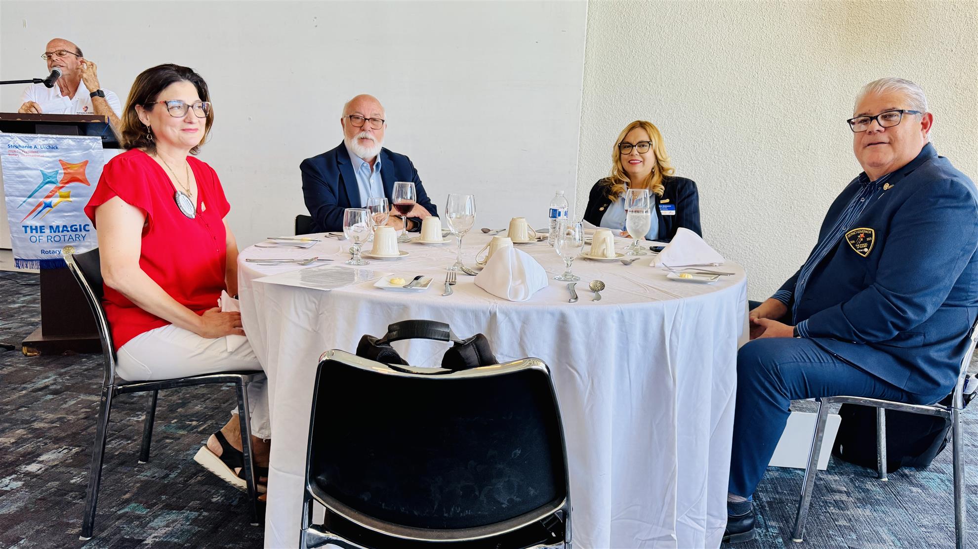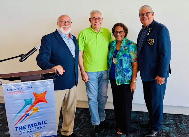 District Governor Marco Belen convened with our Board of Directors to discuss this year's objectives. Following the meeting, he delivered a presentation at our luncheon, expressing contentment with the Club's ongoing performance and discussing how we can harness the "magic of Rotary" to deliver heartfelt services to our community. He highlighted the critical need to maintain and grow our membership and expressed his pleasure in seeing our proactive approach to this aim, led by Rob Bolt, the head of the Membership Committee.