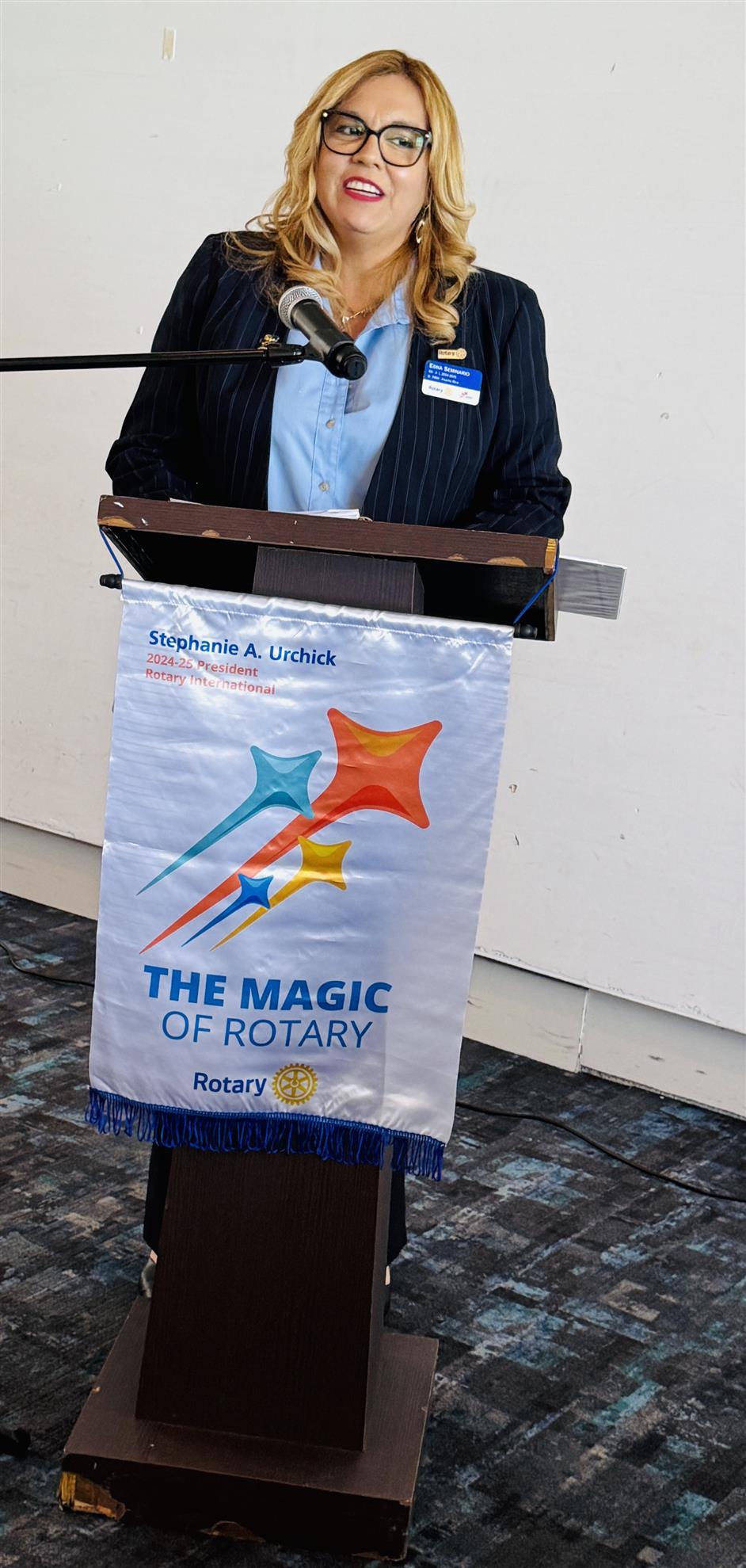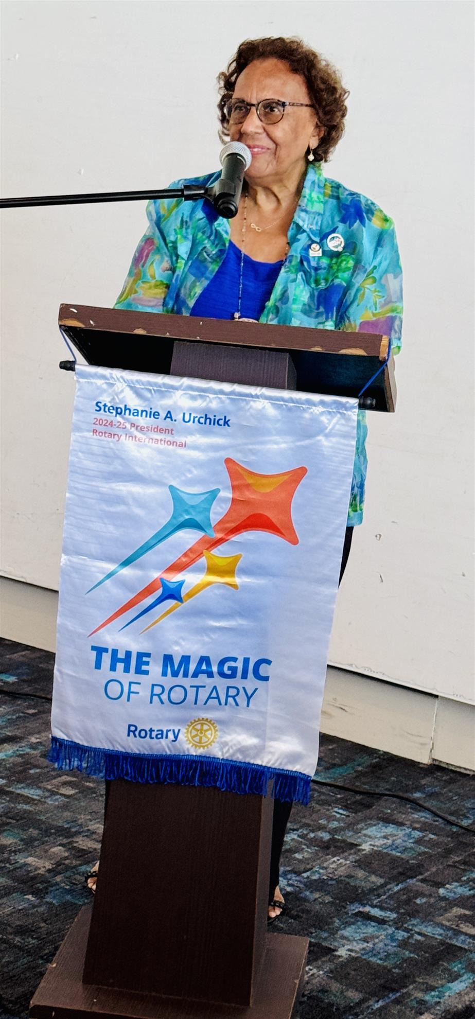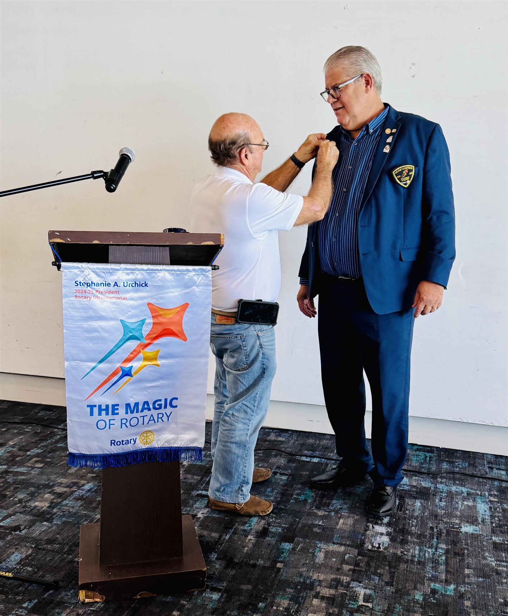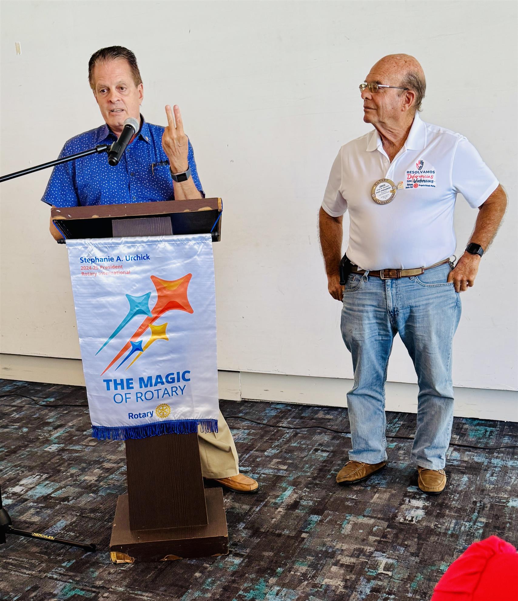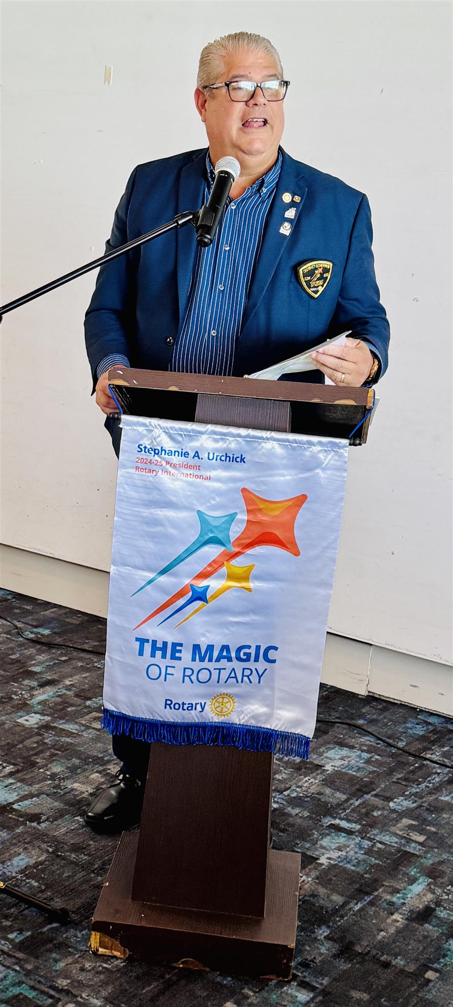 District Governor Marco Belen convened with our Board of Directors to discuss this year's objectives. Following the meeting, he delivered a presentation at our luncheon, expressing contentment with the Club's ongoing performance and discussing how we can harness the "magic of Rotary" to deliver heartfelt services to our community. He highlighted the critical need to maintain and grow our membership and expressed his pleasure in seeing our proactive approach to this aim, led by Rob Bolt, the head of the Membership Committee.