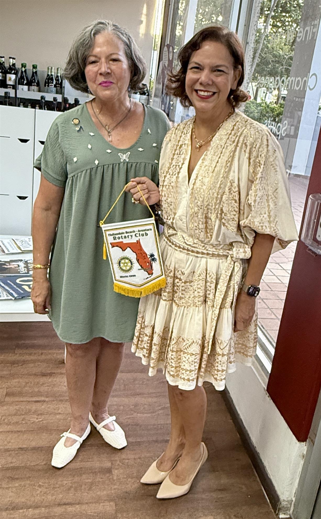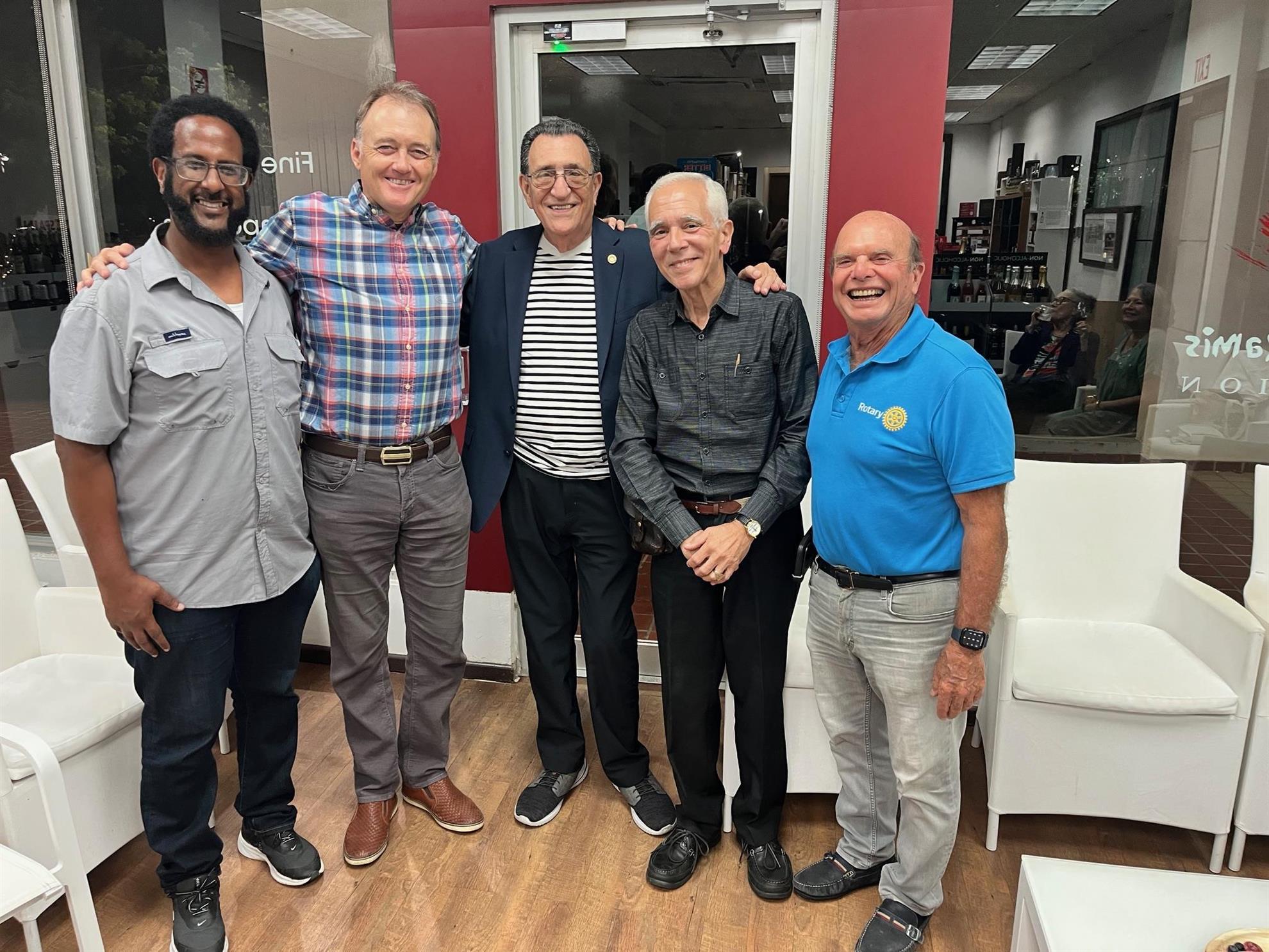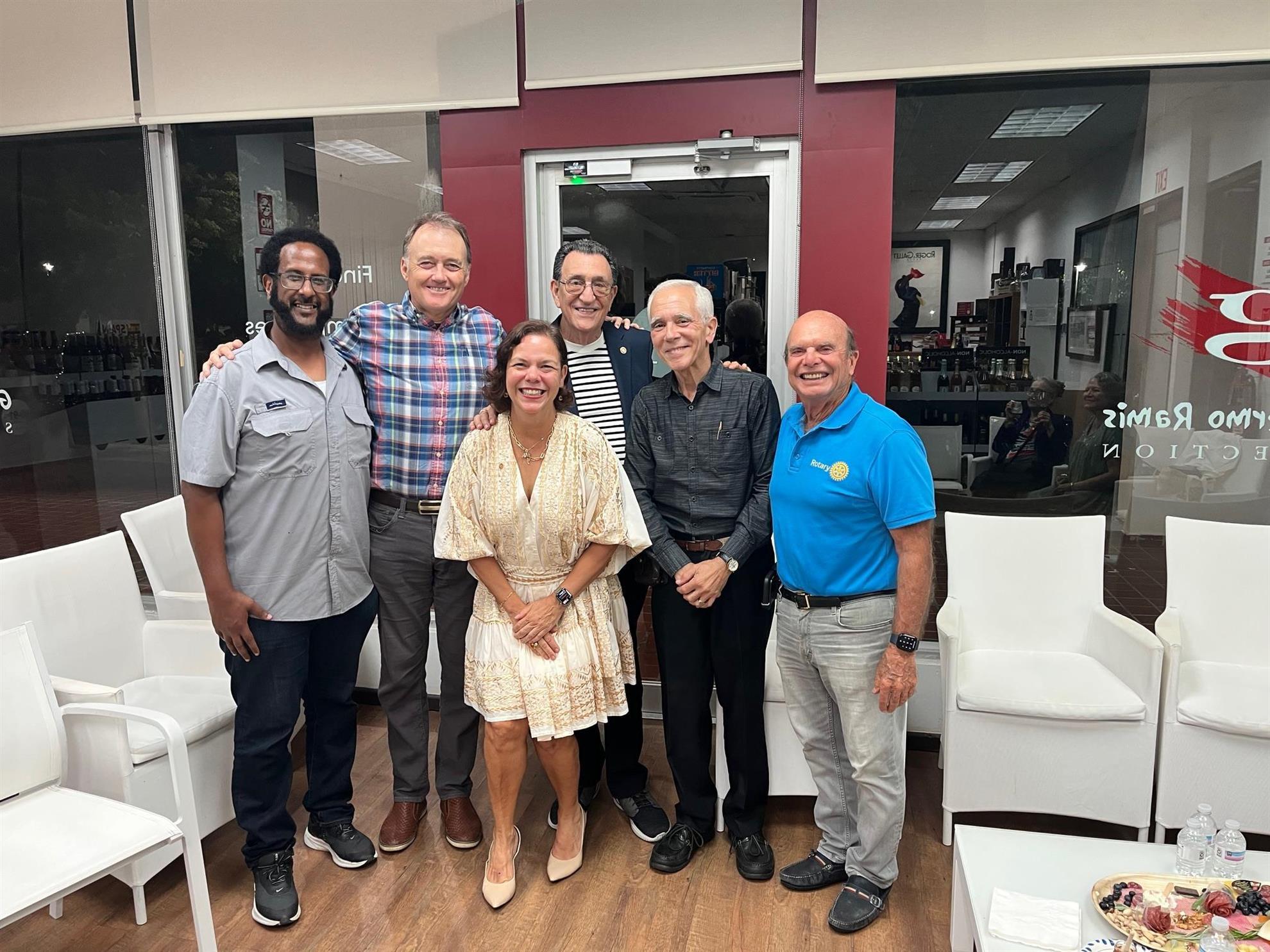 Wine, Fellowship, and New Beginnings On August 12, we hosted our first social event under my presidency at Ambrosia Wine Shop, with about 15 members and guests in attendance. It was a lively evening of community building, laughter, and warm connections. We were especially delighted to welcome a visiting past president, Evelyn Trinidad-Toraño from the Hallandale Beach-Aventura Rotary Club in South Florida with whom we exchanged club flags, and a fellow Rotarian neighbor who joined after learning about the event through our E-Garita. Manolo, Ambrosia’s manager, guided us through an engaging tasting of four wines — a sparkling Cava from Spain, plus selections from Italy, Greece, and Lebanon. Along with the wine came stories, camaraderie, and the joy of seeing familiar faces. This event also marks the start of our new meeting schedule: - 1st Tuesday: Lunch at AFDA