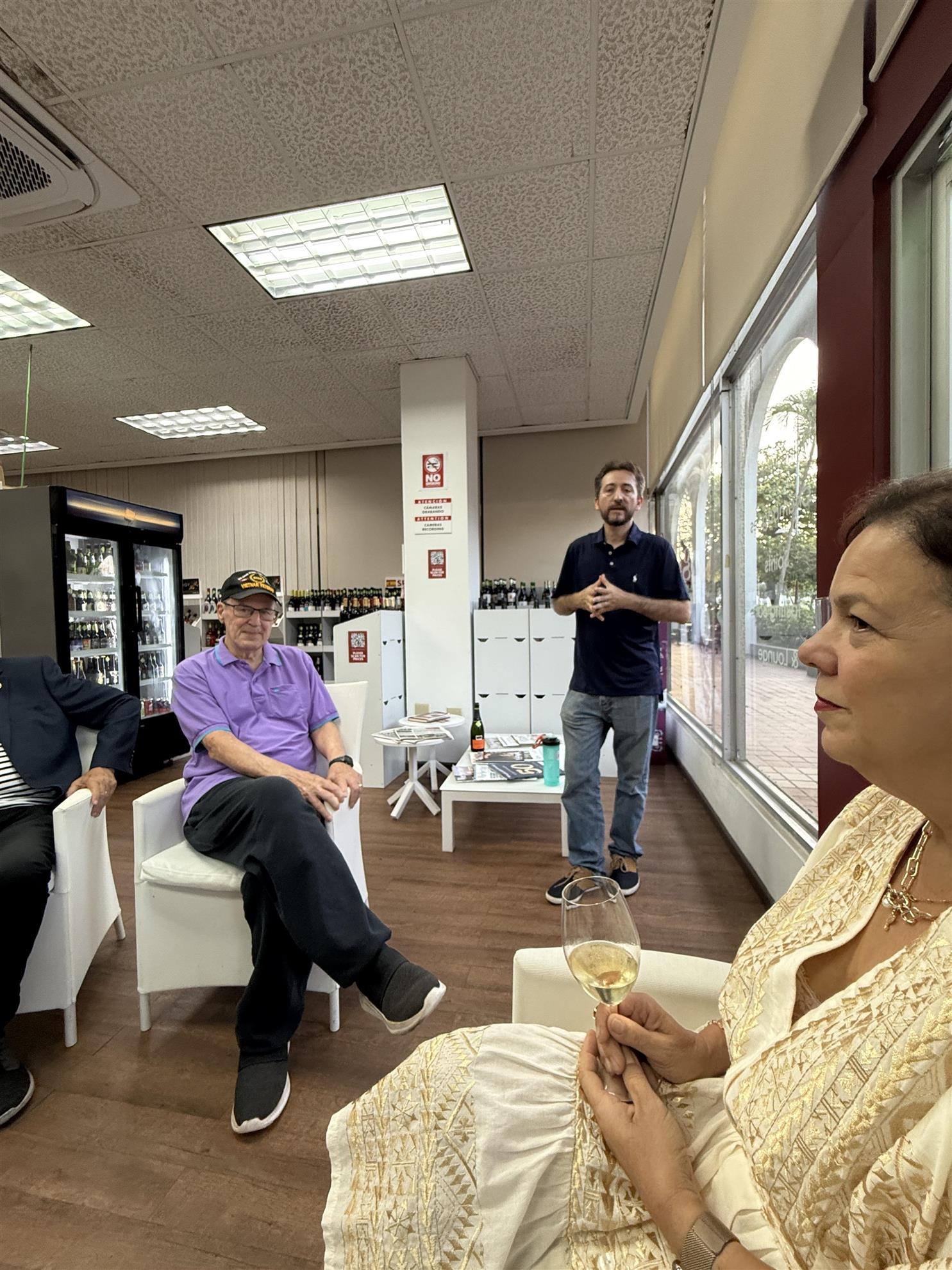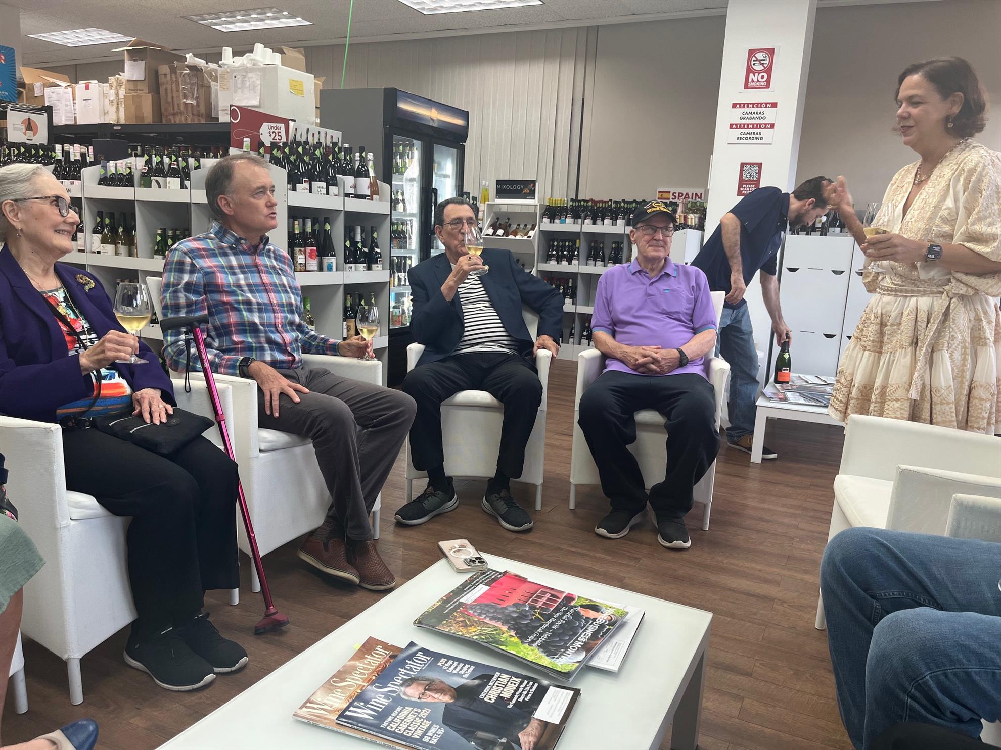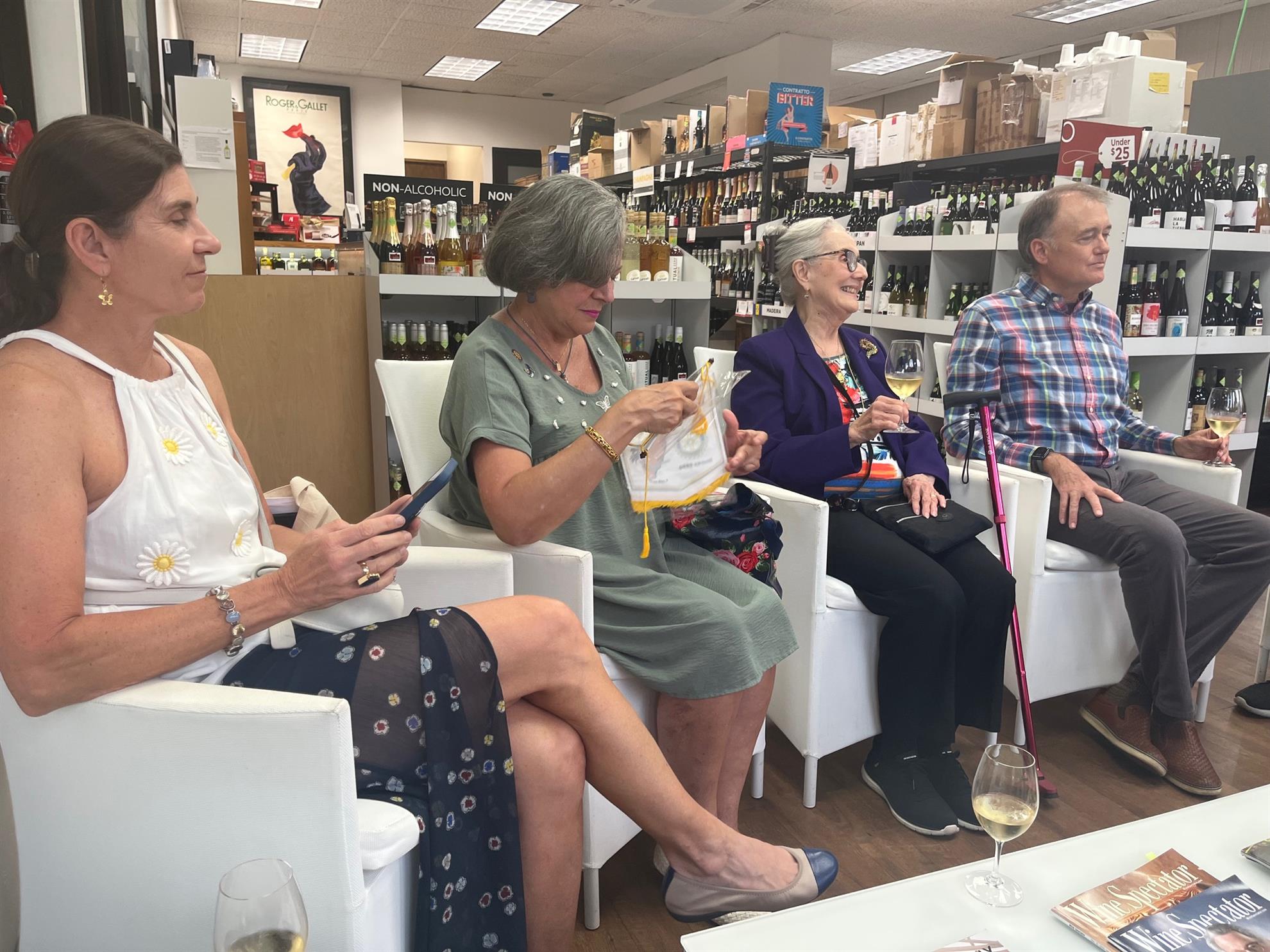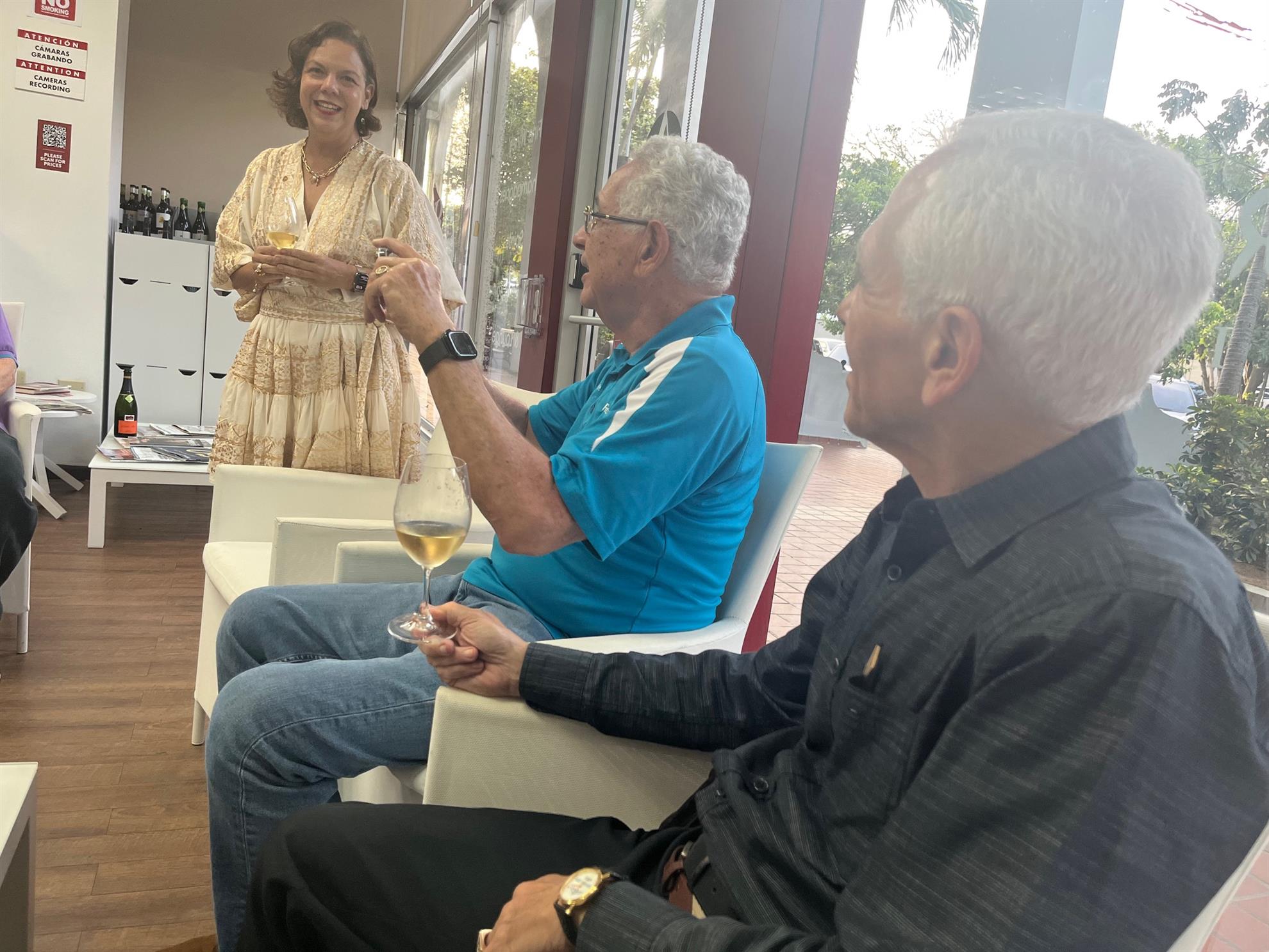 Wine, Fellowship, and New Beginnings On August 12, we hosted our first social event under my presidency at Ambrosia Wine Shop, with about 15 members and guests in attendance. It was a lively evening of community building, laughter, and warm connections. We were especially delighted to welcome a visiting past president, Evelyn Trinidad-Toraño from the Hallandale Beach-Aventura Rotary Club in South Florida with whom we exchanged club flags, and a fellow Rotarian neighbor who joined after learning about the event through our E-Garita. Manolo, Ambrosia’s manager, guided us through an engaging tasting of four wines — a sparkling Cava from Spain, plus selections from Italy, Greece, and Lebanon. Along with the wine came stories, camaraderie, and the joy of seeing familiar faces. This event also marks the start of our new meeting schedule: - 1st Tuesday: Lunch at AFDA