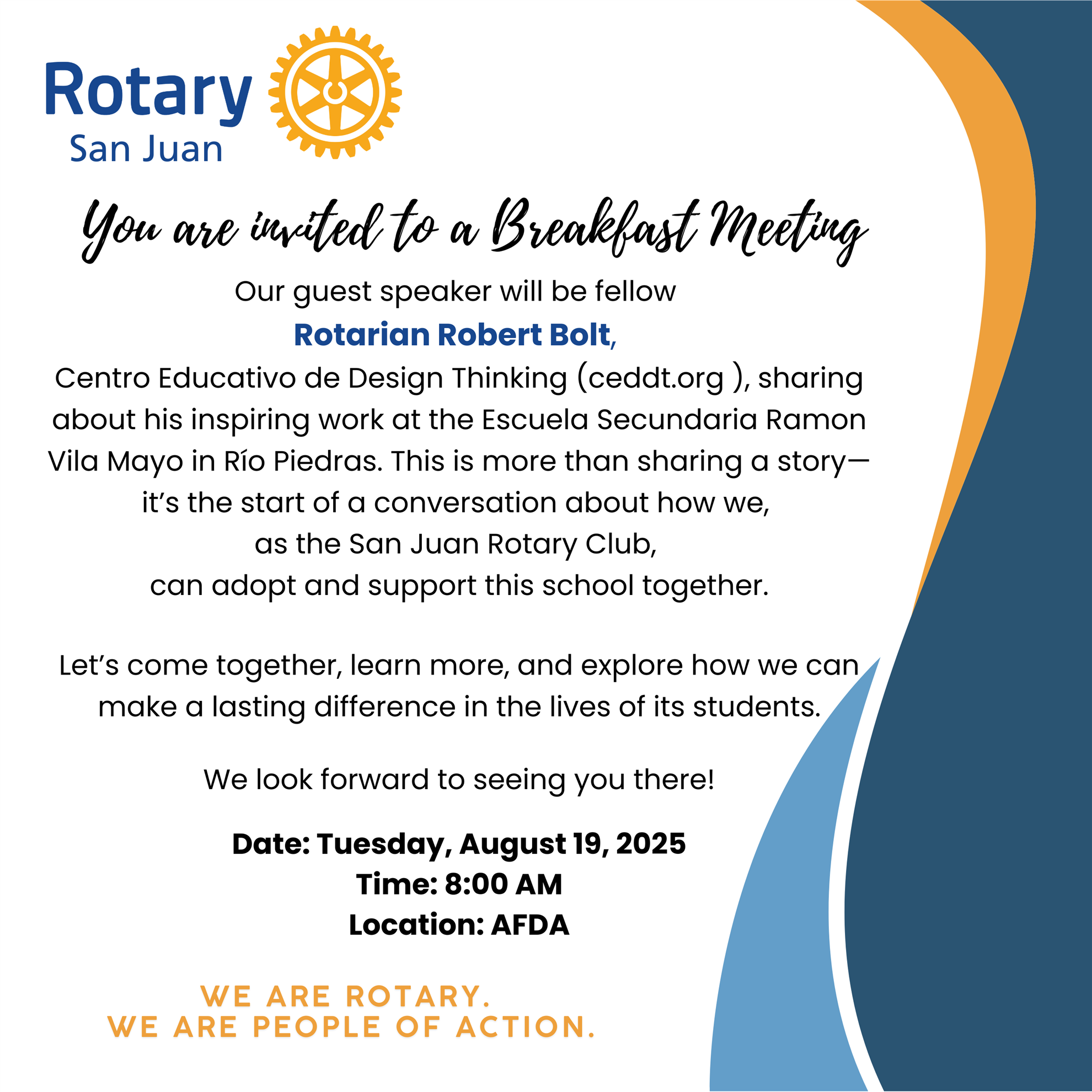 - 3rd Tuesday: Breakfast at AFDA (8:00 AM)