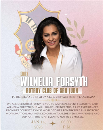 Lady Wilnelia Forsyth conference to San Juan Rotary Club.